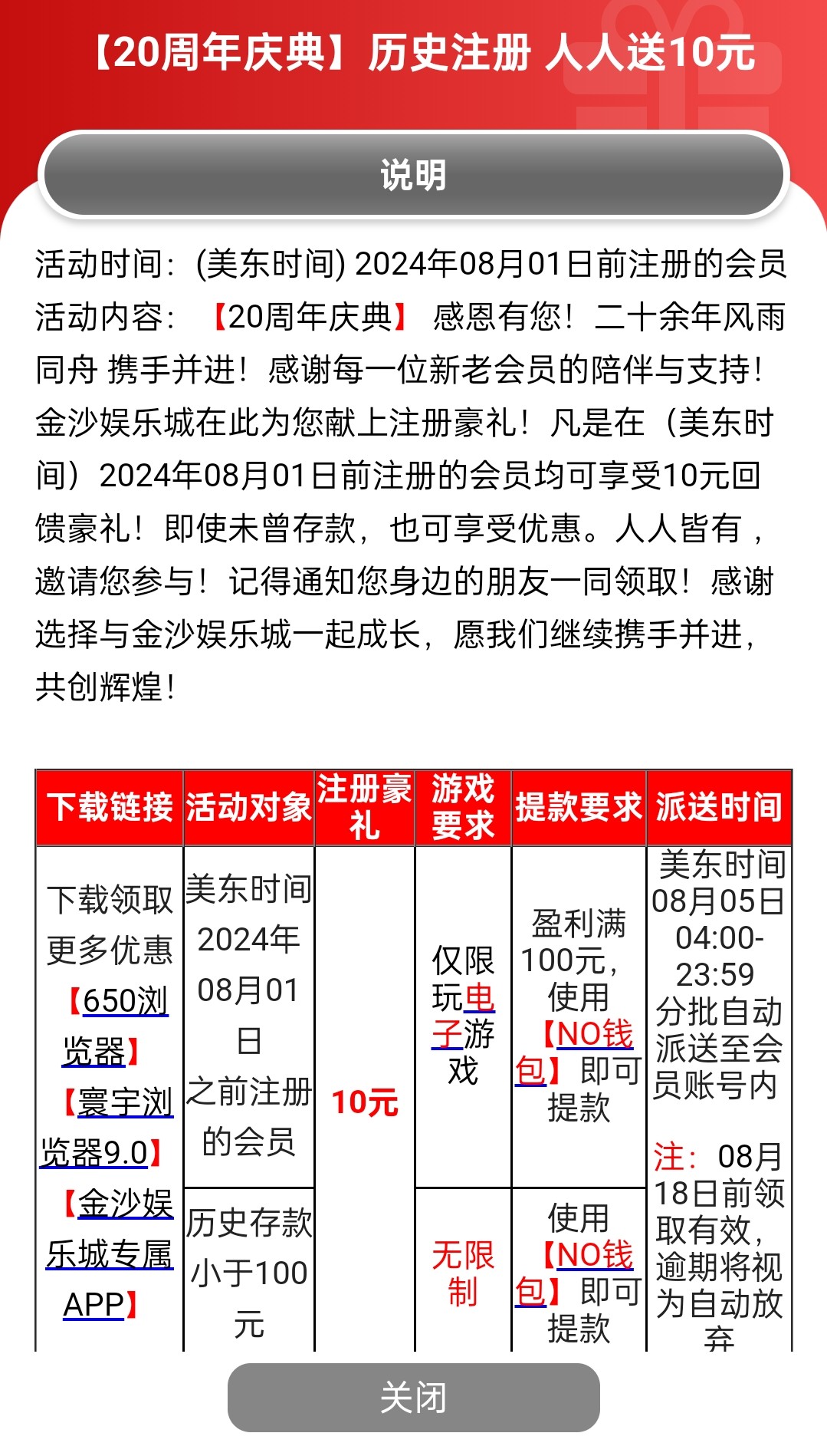 历史注册8月1号之前注册,无存款送10,有号的登入自行查看!